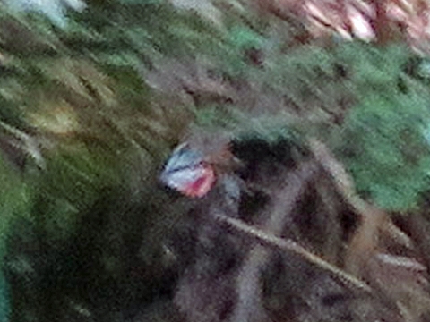 | 高鉾山から林道に出ると、アサギマダラが飛んできたが、動きが激しくて撮せず。 更に林道を行くと、次のアサギマダラが・・・結局、不動峠~山道に戻らず、一軒茶屋まで林道歩きでアサギマダラを追いかけるも、5頭に出会うも写真は無理でした、残念。 |