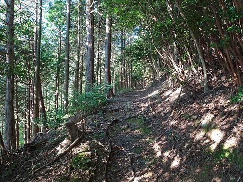 下から見上げる中津峰山、久し振りに霧がかからず山頂の稜線までまずまずくっきり。