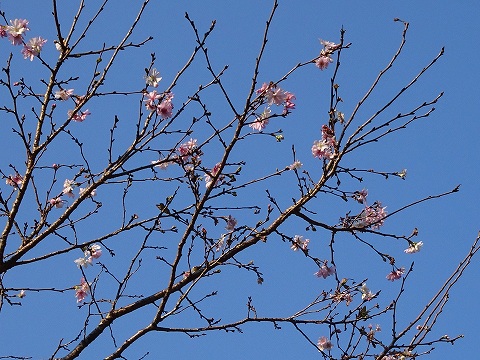 上勝町への県道、月ヶ谷温泉近くの十月桜も花が咲き始めています。 |