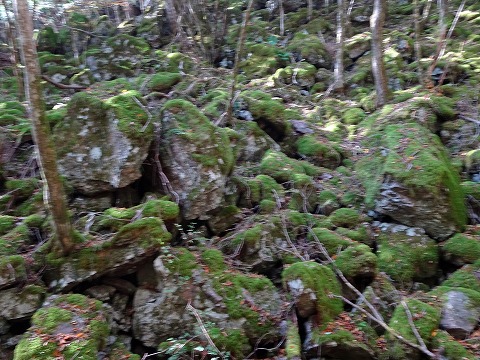 山頂からの下山は「水苔の名所」への看板のあるコースへ移動。幻想的な苔の庭園は素晴らしい。
