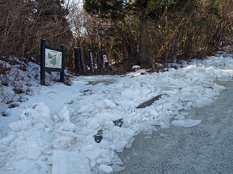 気温高めが数日続き道路の雪もかなり消えたが、ネイチャーセンターから一軒茶屋の辺りには凍結した場所も残っている。途中で引き返されるノーマルタイヤの方もおられたが、スタッドレスタイヤなら問題なく走行。