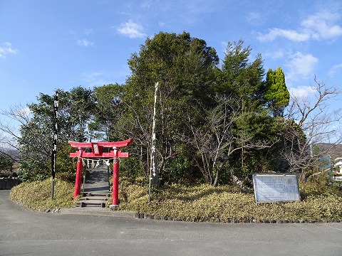 頂上の奥宮に新しい看板。祭神は、峯大神 津咋見命(つぐいみのみこと)・・・『古語拾遺』に、天照大御神が天岩屋に隠れた時、天日鷲神とともに穀(かじ)の木を植えて白和幣(木綿)を作った神様らしい。