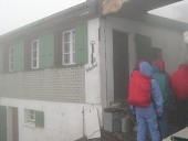 山小屋に到着。横殴りの雨で顔が痛いほどでした。ここでスープを注文しランチ休憩。