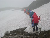 いよいよ雨が本降りとなりました。風も出てきて流石に寒いです。全員、雨具を装着。上下を装着しましたが、これが正解で、ファウルホルンに近づくと横殴りの風と雨になってしまいました。