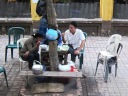 蜘蛛の巣状の電線群とバイクのラッシュ府に驚き。一方では昔ながらの風景も。 |