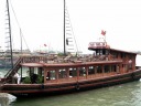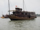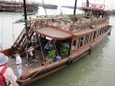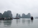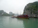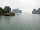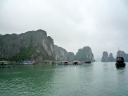 やっとハロン湾の入口に到着。想像より立派なクルーズ船がずらりと停泊しています。カンボジアのトンレサップ湖で乗ったクルーズ船とは比較にならないのは当然として、漓江下りに勝るとも劣らぬ感じです。 |