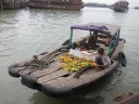 | 私達の乗ったクルーズ船は2階建て、下が座席になっていて食事もできます。上はオープンデッキになっていて風景を楽しめます。物売りの小舟が漕ぎ寄ってきてこちらの船の窓越しに売ろうとするのは漓江下りと同じ。あちらの竹で作った筏のような小舟に比べるとしっかりしていますが。 |
