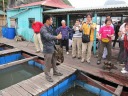| クルーズ途中で立ち寄った海鮮を売っている筏+小屋。カブトガニもいて大騒ぎ(^_^)。 |