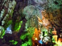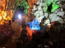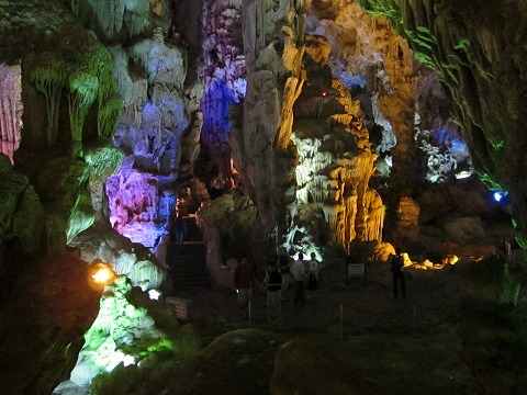 我々にはちょっと馴染みにくいカラフルなライトアップ。これは桂林の冠岩幽洞とそっくりです(^_^;)。 |