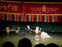 ベトナムの水上人形劇は、千年の昔から伝わる伝統芸能だそうです。農民が収穫の祭りの時などに、屋外の水辺を使って演じていたものが、11世紀以降になって娯楽として宮廷にまで広がったものだとの事。 |