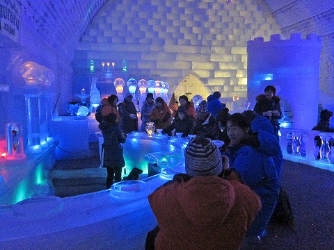| もう14時、護法は露天風呂へ。大慌てプールで泳ぎ、大きな露天風呂の中をウォーキング。忙しく大汗を流しながら15時にはアイスミュージアムの観光。 |