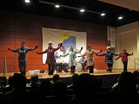 続いて、ビジターセンターに移動して先住民のダンスショーを観賞。アラスカ大学の学生を中心にした活動らしい。 |