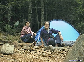 私らの後からまだ2・3組が到着してテント場はほぼいっぱいの状態。若い人が目に付きましたが、夏休み最後の山遊びでしょうか。皆さん静かでしたね。天気予報に反して、遂に雲がとれないままで、楽しみにしていた星空を諦めたせいもあって、ぐっすりと寝てしまいました。朝もやっとこさ起き出しました。