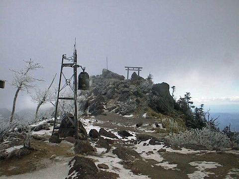 社務所の横で強い風を避け、スープで身体を暖めている間にも、雲、ガス、青空と目まぐるしく変化しますが、北から西は雲に覆われて展望がききません。女峰山、太郎山、白根山の方はだいぶ雪が降っているのではないでしょうか。南側も遠くは雲がかかったのか、富士山も見えなくなりました。皇海山の周辺の展望はありましたが、寒くて山の同定を楽しむ気力を無くしてしまいました(^_^;)。