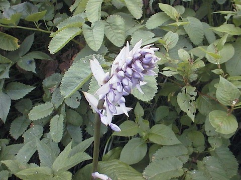 河原の坊まで行くバスを岳で下車し、早池峰神社に寄り道。参道脇にお神楽の小さな舞台がありました。岳から林道を数分登ると、今夜の宿舎である第3セクタの峰南荘に到着。個室が3・4室に男性・女性に別れたふたつの広間のこぢんまりとした宿です。夕食は、岩魚の塩焼き、フキ・ツルムラサキ・ウドの煮付け、マイタケの天ぷら等8品にみそ汁。副食つきのおにぎり弁当を合わせて7000円とリーズナブルでありました。 |