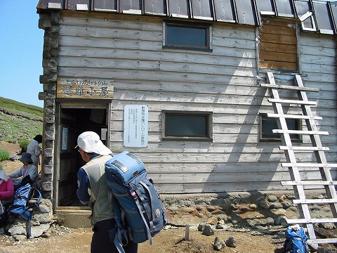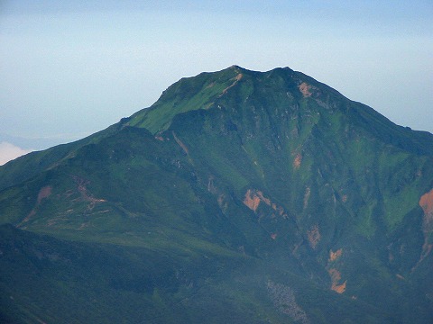 北鎮岳分岐までの短い急登ですが、ここで恐いリーダー?ガイド?に遭遇。長靴を履いた男女ふたりに引率されたグループでしたが、どうも我々の動きが遅すぎたらしく、「早く行け」と後ろから突き飛ばされました。確かに速いとは言えない速度でしたけどね(^_^;)。結局、分岐には同時に到着、なんだかグループのひとりは体調が悪いらしくて蹲ってましたが。