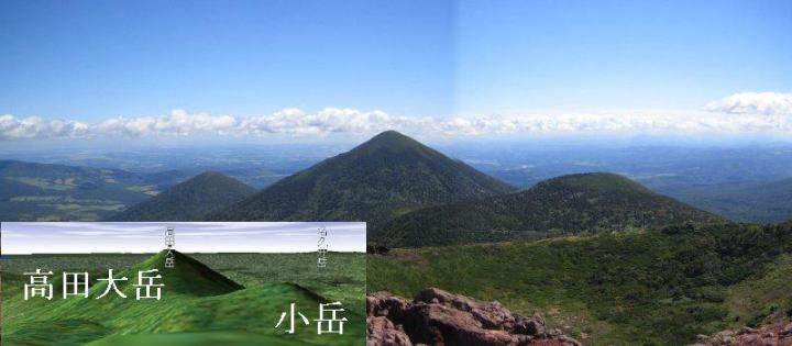 | そして八甲田山の最高峰である大岳の山頂です。天候は回復し青空ですが、少し霞がかかった感じで青森市、十和田市がうっすらと見えますが、北海道の展望はきかずでした。 |