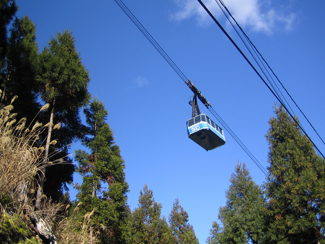 | 帰りは山頂駅で、またまたキノコ茶の尾接待をいただき、暫くロープウェーを管理されている方にお話しを伺いました。今も、舎心ヶ嶽の上に実際に座って修行される方々がいるそうです。大きく拡がる海、なにか気持ちが引き締まるという事です。求聞持堂に籠もられて、舎心ヶ嶽とを往復して虚空蔵求聞持法を修行されるとか。昔は100日だったが、いまは50日だそうです。 |