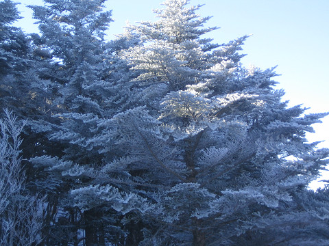 | 順不同ですが、行程中の霧氷です。風もなく快晴で暖かい日でしたが、昼過ぎまで霧氷はしっかりと残ってくれました。 |
