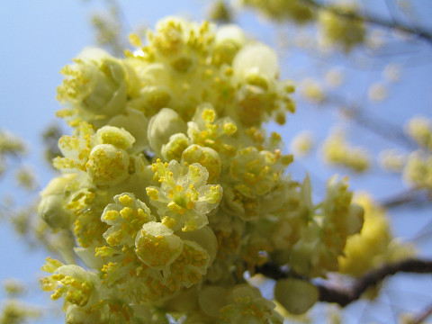 | 黄色い花をつけた木があちらこちらにありました。HPお仲間に教えていただき、アオモジと判明。藪椿の右のキノコみたいなのはロウヤカキかもとの情報をいただいてます |