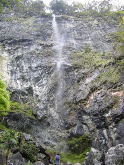 | 慈眼寺から少し降りたところに落差〜70mの灌頂の滝があります。途中から霧状になる見応えのある滝です。晴天だと、午前中は陽の光で五色の虹になると看板に書かれていました。なお、灌頂とは霊水を頭から頂く、すなわち水行の事だそうです |