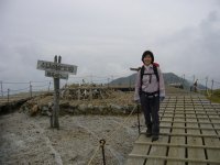 | 剣山頂上で雨具を着けましたが、一ノ森での食事は屋外で出来ましたし、下山時に少し小雨がパラツク程度。連れ合いの友人の「晴れ女」伝説は本物でした(^_^)。 |