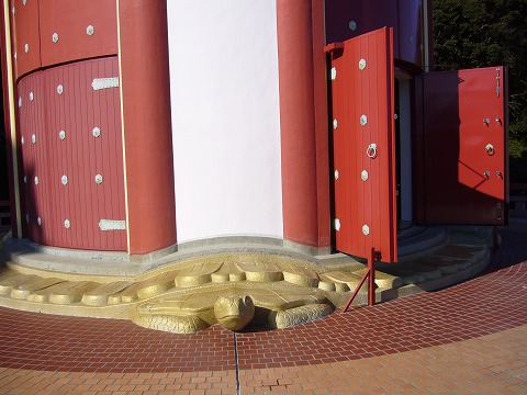 | 本堂の更に上には多宝塔が聳えています。この多宝塔の下には大きな亀さんの像があって、塔を支えています。日和佐は海亀の産卵で有名な海岸がありますが、それと関係あるのか、ないのか?謂われは不明です。 |