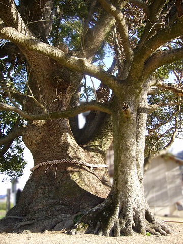 農村舞台から戻る途中に目に入ったのが大きな木です。なんだろうと寄り道しました。速水神社と書かれていました。クスの大木、樹齢は空いて500年だとか。神社の創祀年代は不詳。