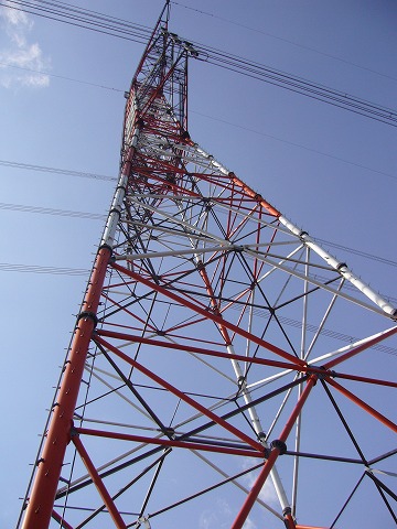 凍結路面の急斜面をやっと登り切ったところで次のミス。写真のような木の棒が立っていて「高鉾山・・・・なんとか、かんとか」と書いてあります。字が消えて読めません。赤テープもあって、そちらの分岐を左へと下って行くと、南阿波幹線のNo.70鉄塔に出ました。ここでまたまたミスです。鉄塔の手前を下っていく道に引き込まれて、アレレとまたまた引き返すことに。陽当たりの良い鉄塔下で食事にしました。 |