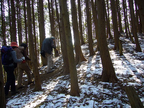 流石にアイゼンは必要としなかったですが、山頂手前では斑雪の状態。日陰になっているために結構寒かったですね。 |
