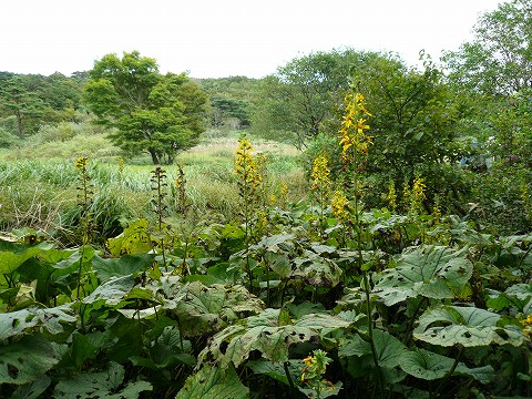 例年になく暑い日が続き、この日も蒸し暑くて大大汗を掻きましたが、登山道は快適な雰囲気です。約1時間で竜神平に到着。広々した草原の雰囲気ですが、本当はミズゴケが生えたきれいな湿原であったが、乾燥化が進んでいるそうです。 |