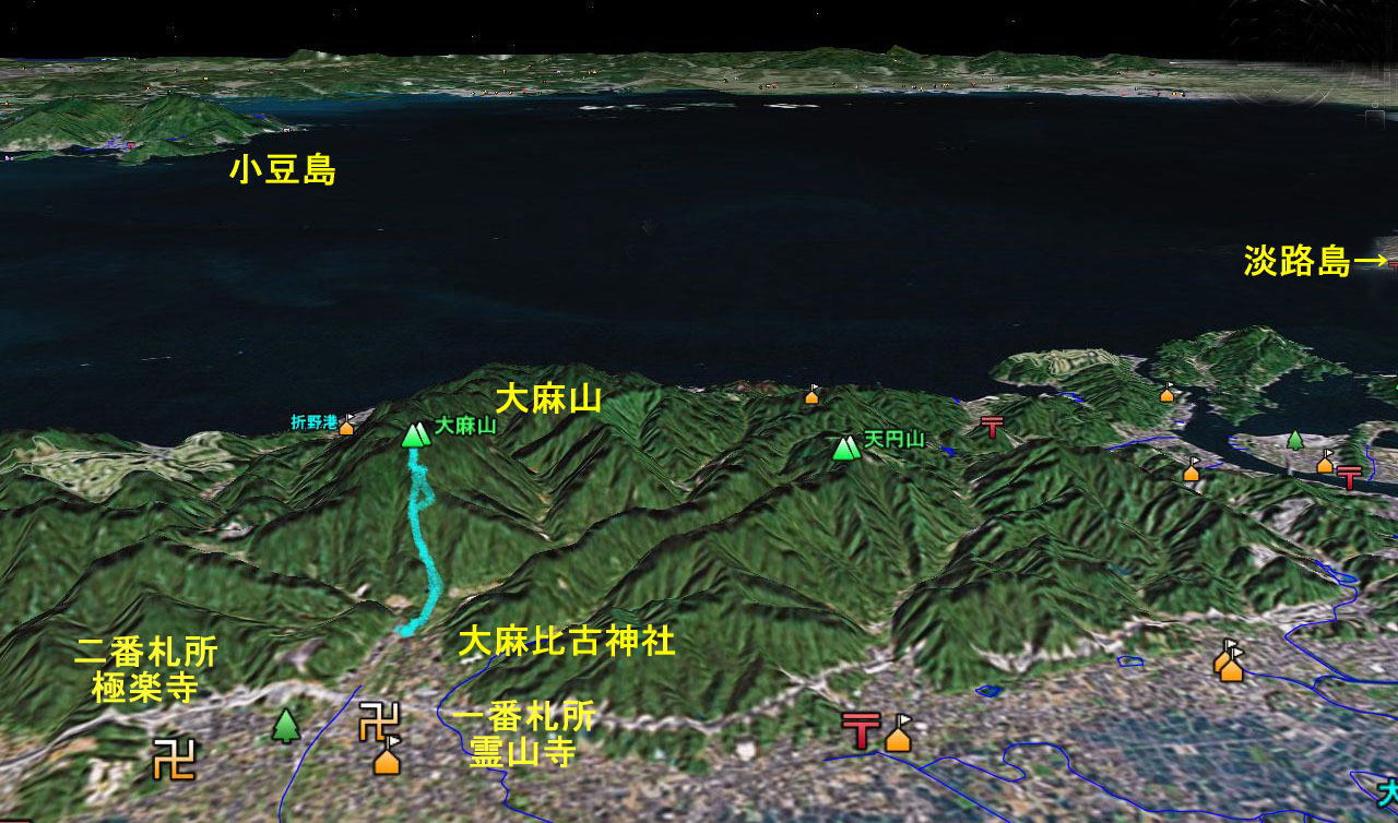 徳島市内=2番札所 極楽寺=大麻比古神社−大麻山−大麻比古神社=徳島市内