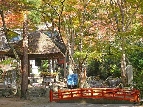 表参道の紅葉と岩です。周囲を少し山と木で囲まれて明るさがもうひとつ。 |