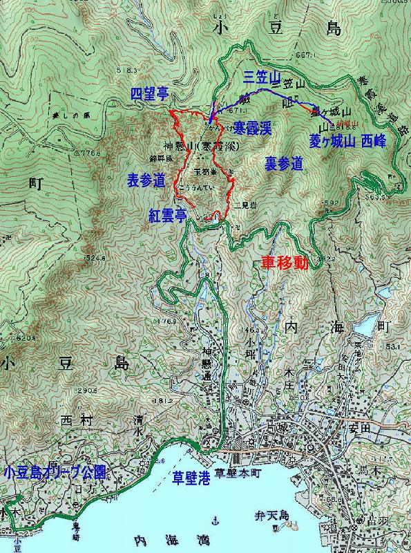 −紅雲亭ー表参道−四望亭−寒霞渓山頂−三笠山−星ヶ城山 西峰、東峰−三笠山−寒霞渓山頂