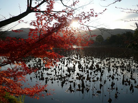 京都まで高速バスで3時間弱、朝7時頃に出てJR嵯峨嵐山駅から歩き始めたのが11時でした。嵯峨野を徘徊して京福嵐山駅に戻ったのが16:40頃、約14Km歩いたようです。肝心の紅葉はそろそろ終盤。だいぶ落葉し、残っている葉も鮮やかさがもうひとつ。 |