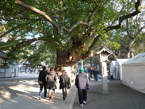 かっては一番札所の霊山寺の奥の院だったらしい大麻比古神社は徳島県では初詣客が約30万と一番多いらしいです。4日もそれなりに露店も出ていて臨時駐車場も設けて大勢の整理人が出ていました。農業・産業の守り神である大麻比古命と、交通安全厄除けの神の猿田彦命がまつられていますが、明治以前は阿波忌部の祖・天日鷲命が祭神で、それまで山頂に祀られていた猿田彦命を合祀したとか。 |