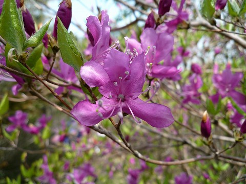 そしてカタクリの次はツツジでしょうか。旭ヶ丸への登山道はツツジの花のトンネルになりそうです。 |