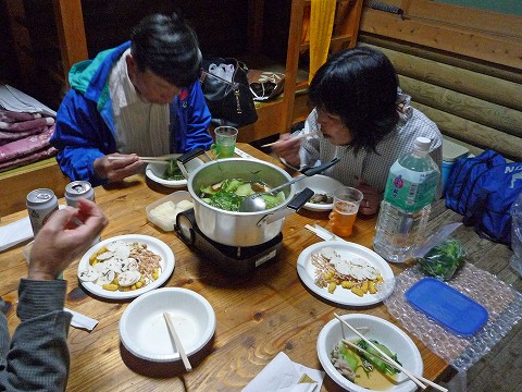 そしてバンガローに入って、わいわいと楽しい夕食です。