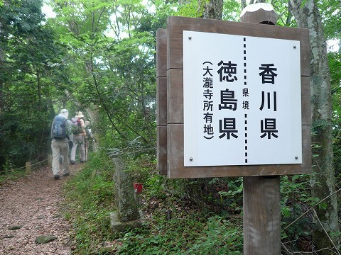 | 神社のすぐ横に手書きの大滝山の札があり、徳島県と香川県の県境になっている稜線に出ます。少し西に |