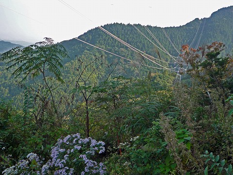 合戦尾根の途中からの高圧線の迫力ある風景です。 |