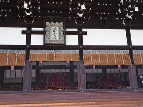 紫宸殿です。気持ちが落ち着かないままに来てしまったため、どこをどのように見学し、撮した写真がどこなのかはっきりしないものあります(汗)。 |