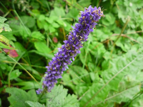 山頂からは東回りコースで下山。登りの西回りコースよりトリカブトが多いです。 |