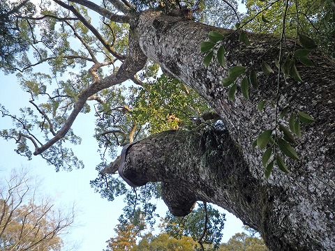 正宮への参道には杉、楠などの大木。正宮は撮影できないので石段の下からの写真です。