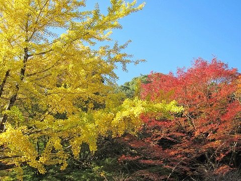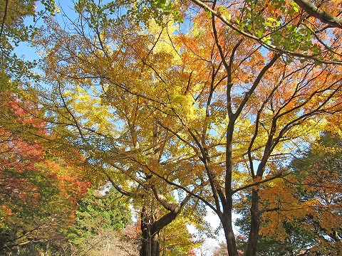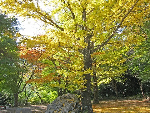 如意輪寺の駐車場の黄葉。落ち葉が好きな孫に送るべく葉を拾っていると、「銀杏?」と聞かれました。今年は銀杏が少なかったのか、もう拾われたのか、あまり落ちていません。 |