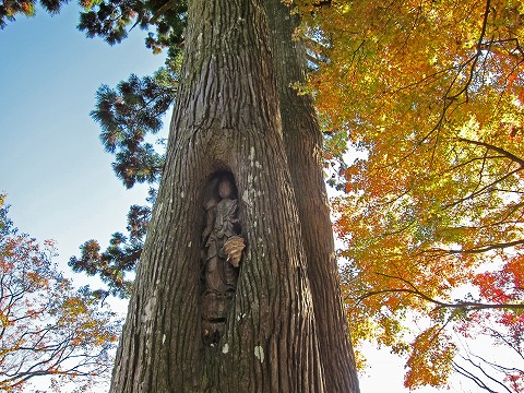 そして生木に彫られた立木観音を過ぎると本堂など。ここのお坊さんはチベットにも行かれたようです。 |