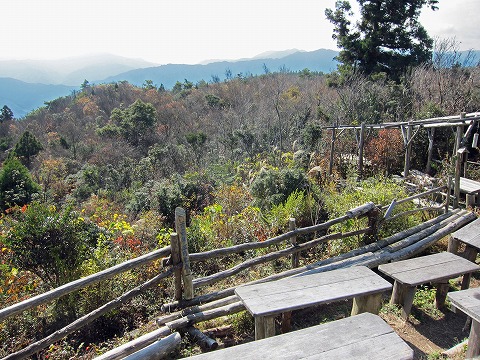 途中の展望台でどちらへ行こうかとしばし検討。久しぶりに「しゃくなげ園」におりて林道を如意輪寺まで歩く事に決定。 |