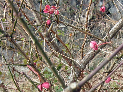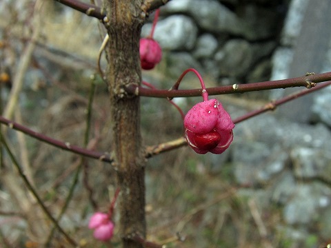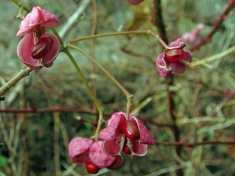 途中で見つけたマユミ。丹沢・箱根・中央線沿線ではあちらこちらで頻繁に目にしていたマユミ。徳島では今回が初めてです。知人お話しではマユミの見られる場所が幾つかあるようですが、丹沢など程はないのかな。 |