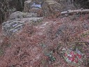 そして山頂。曇っているうえに風もあって身体が冷え切って凍えていたけど、急に陽が射してきて、ベンチの付近は風もなし。一気に解凍されて気持ちの良いポカポカ状態でお弁当です。