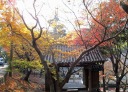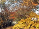 下山後、車で帰る途中の丈六寺。まだ紅葉が見られました。そして町中に出たところで綺麗な夕陽に遭遇。 |