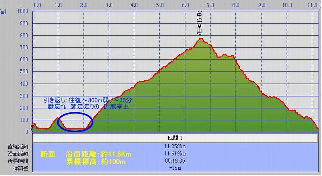 今回は少し登ったところで、車のロック忘れに気付き荷物を置いて走りおりてから登り返し。更にトレーニング効果ありの累積標高差は1100m超(^_^)。 |